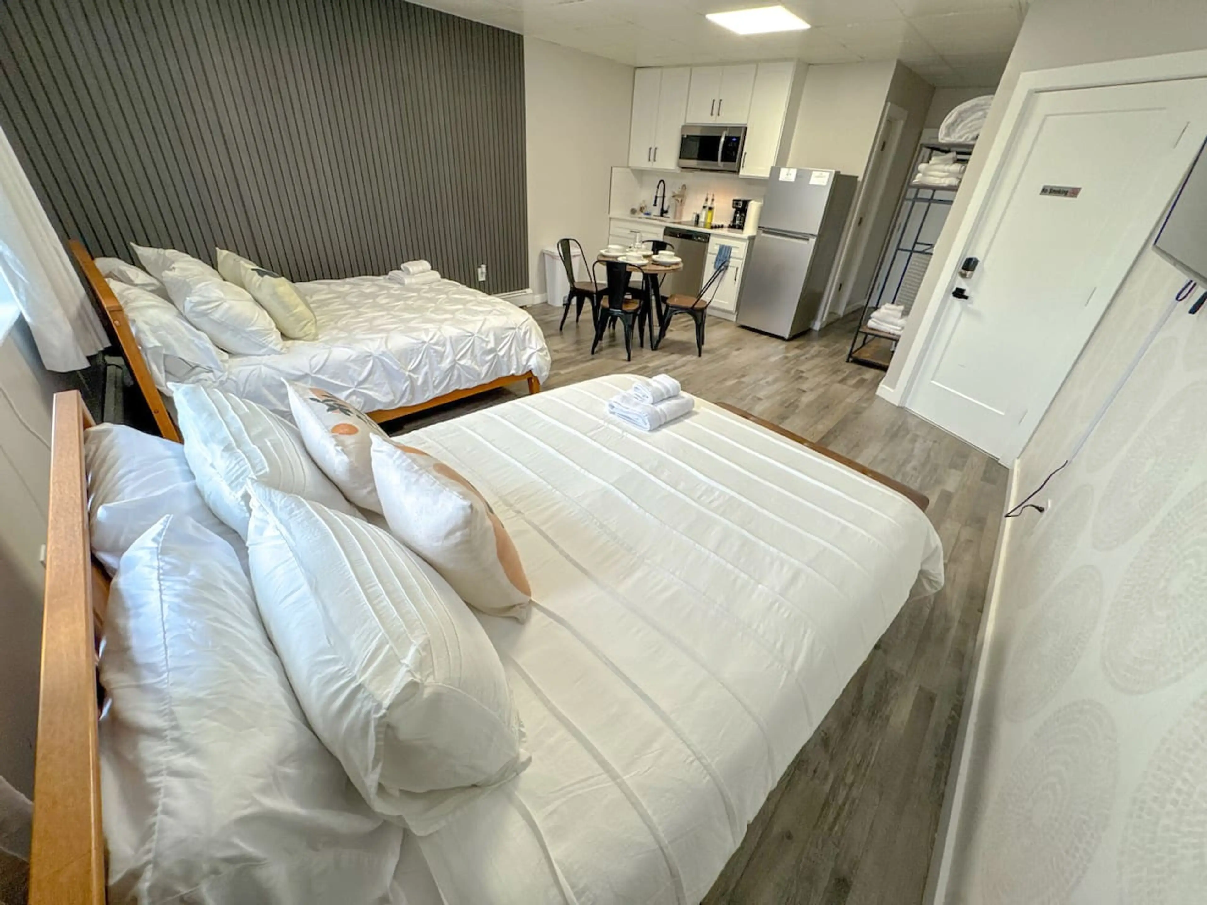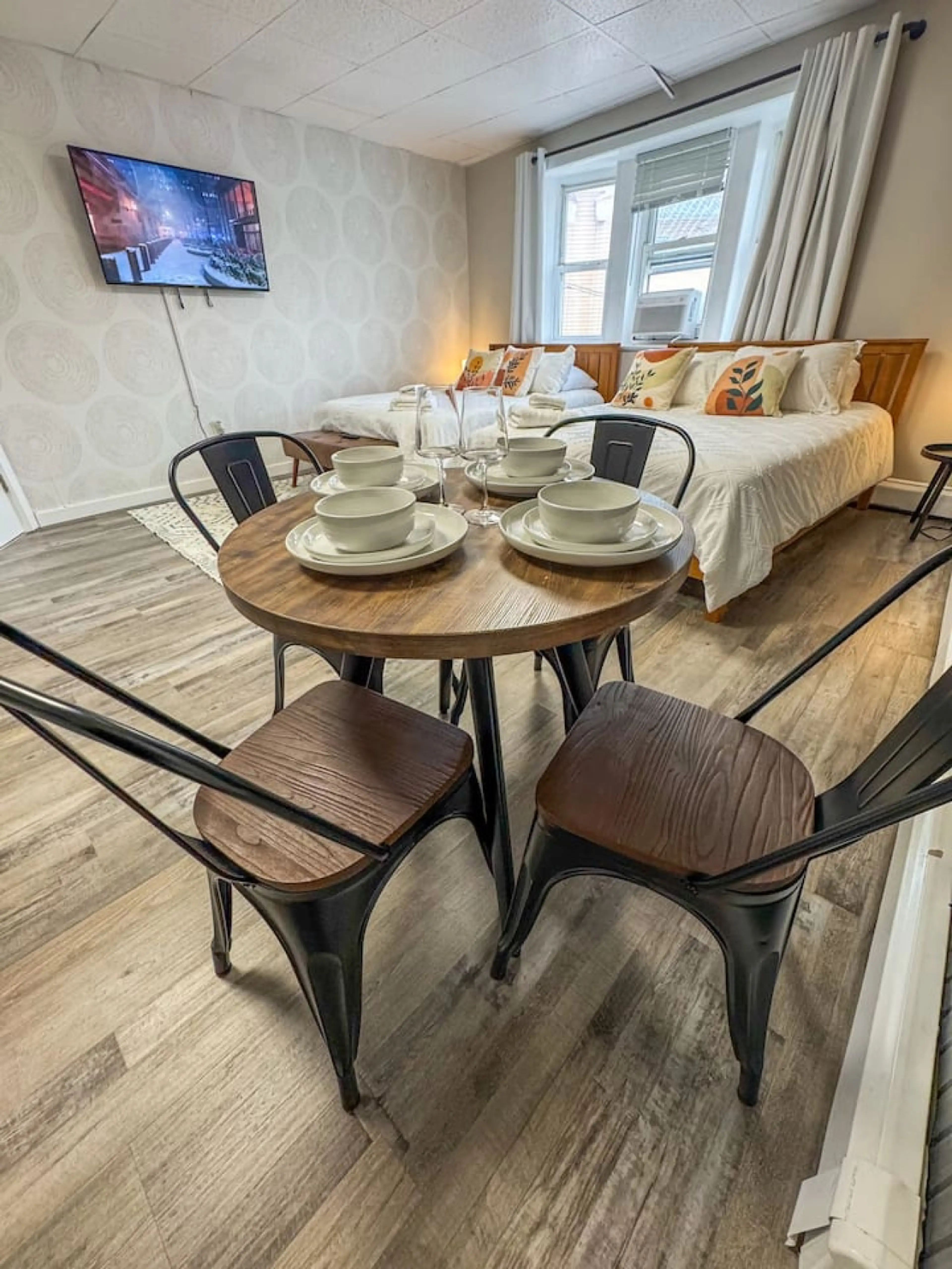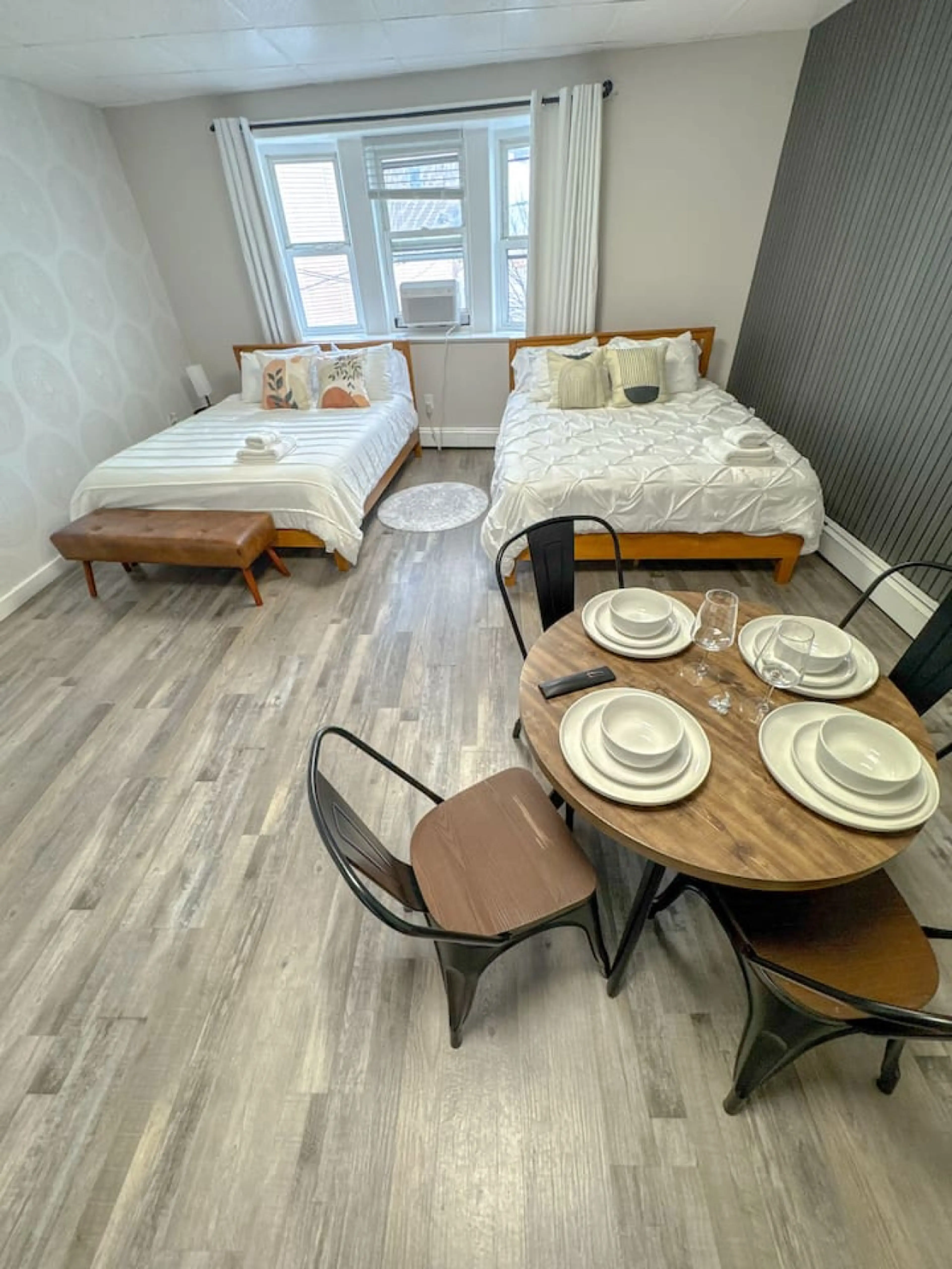 Smart apartment with connecting rooms—perfect for groups! This unit has 2 queen beds for up to 4 guests, plus an adjacent room with 1 queen bed, ideal for a couple. Enjoy extra privacy while staying together! Located on Ferry St, the heart of Newark Ironbound, just a 10-minute walk to Newark Penn...